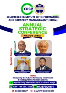 Chartered Institute of Information and Strategy Management (CIISM) is an educational institution and the largest professional body of Information and Strategy Management in Africa with over 6,000 members. The institute is incorporated as Institute of Information and Strategy Management with approval from Federal Ministry of Education and other relevant government agencies. We are committed to equipping our members with the highest international standards, knowledge, and capacity building through seminars, local and international trainings, and conferences that enhance them to gain competitive advantage in information and strategic management.